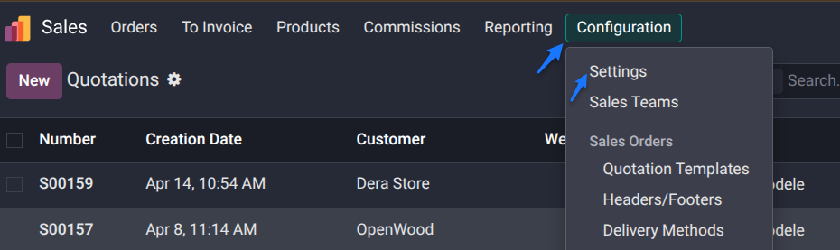 Sales → Configuration → Settings