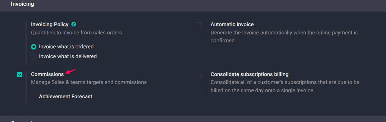 - Enable the Commissions feature