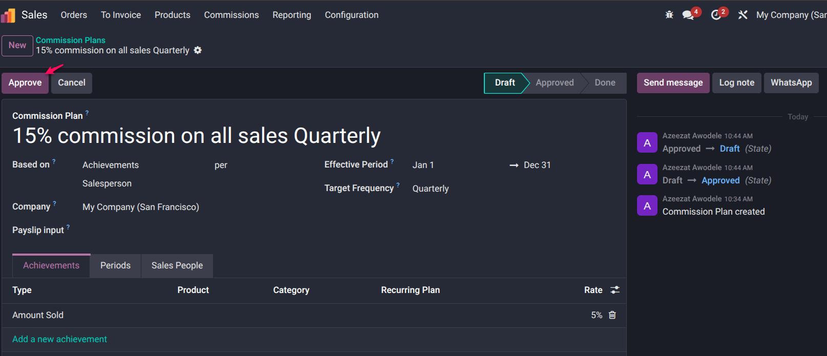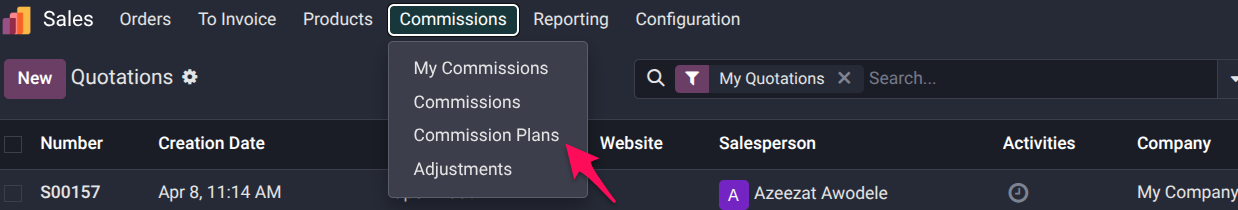 Sales → Commissions → Commission Plans