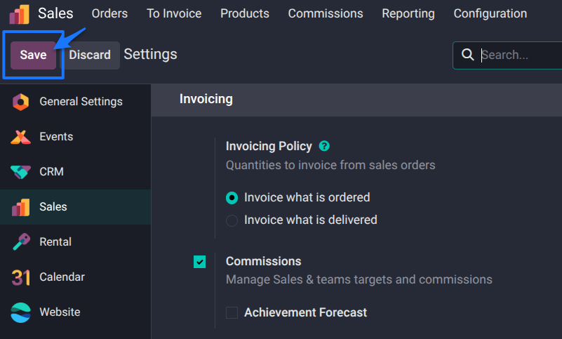 - Enable the Commissions feature